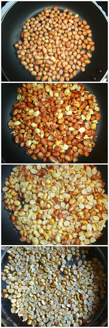 Dry roast the following ingredients on slow flame. Sesame seeds, Raw peanuts, Roasted Chana dal, desiccated coconut and green Cardamom. Take very good care, follow dry roasting process on slow flame to avoid getting burnt. From the above list raw peanuts take good time compare to other ingredients. Allow them to cool down and keep aside until called for.